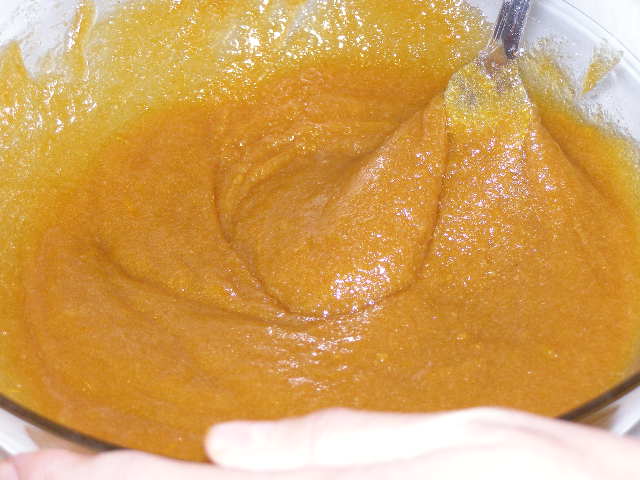Cuece el boniato con piel, pélala una vez cocida y déjala enfriar. Machácala con un tenedor y mézclala bien con el azúcar, después agrega la almendra molida, la ralladura de piel de limón y mezcla bien.