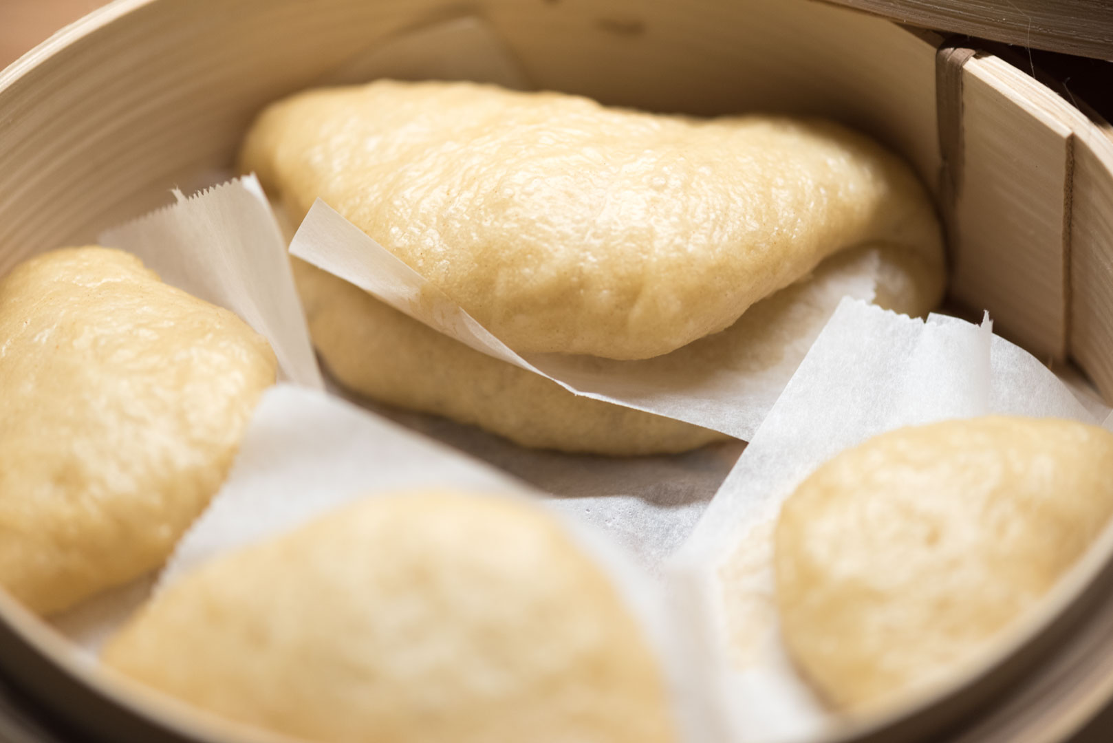 - Retiramos la vaporera de la cacerola y dejamos reposar los Gua Bao unos 5 minutos dentro de la vaporera.